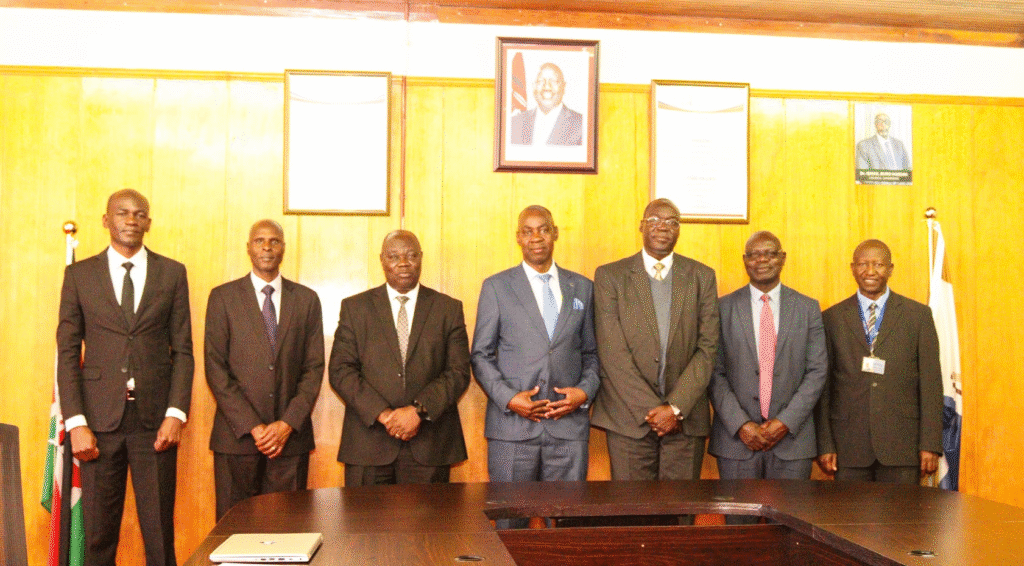 From left: Mr. Steven Anditi (Senior Legal Officer),Prof. Wilson Ng’etich (Deputy Vice-Chancellor – AF),Philip Raburu (Deputy Vice-Chancellor – PRE),Prof. Godfrey